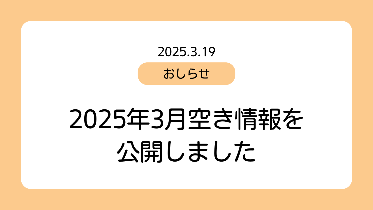 2025年3月の空き情報を公開いたしましたので、ご利用を検討されている方はぜひご確認ください。