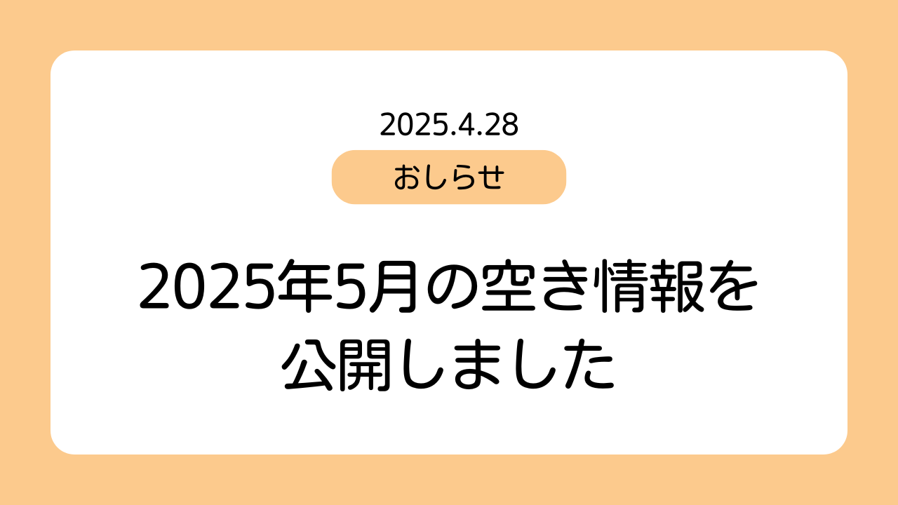 2025年5月の空き情報を公開いたしましたので、ご利用を検討されている方はぜひご確認ください。