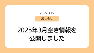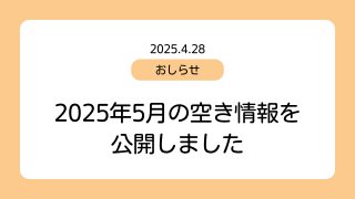 お知らせ 2025年9月の空き情報を公開しました